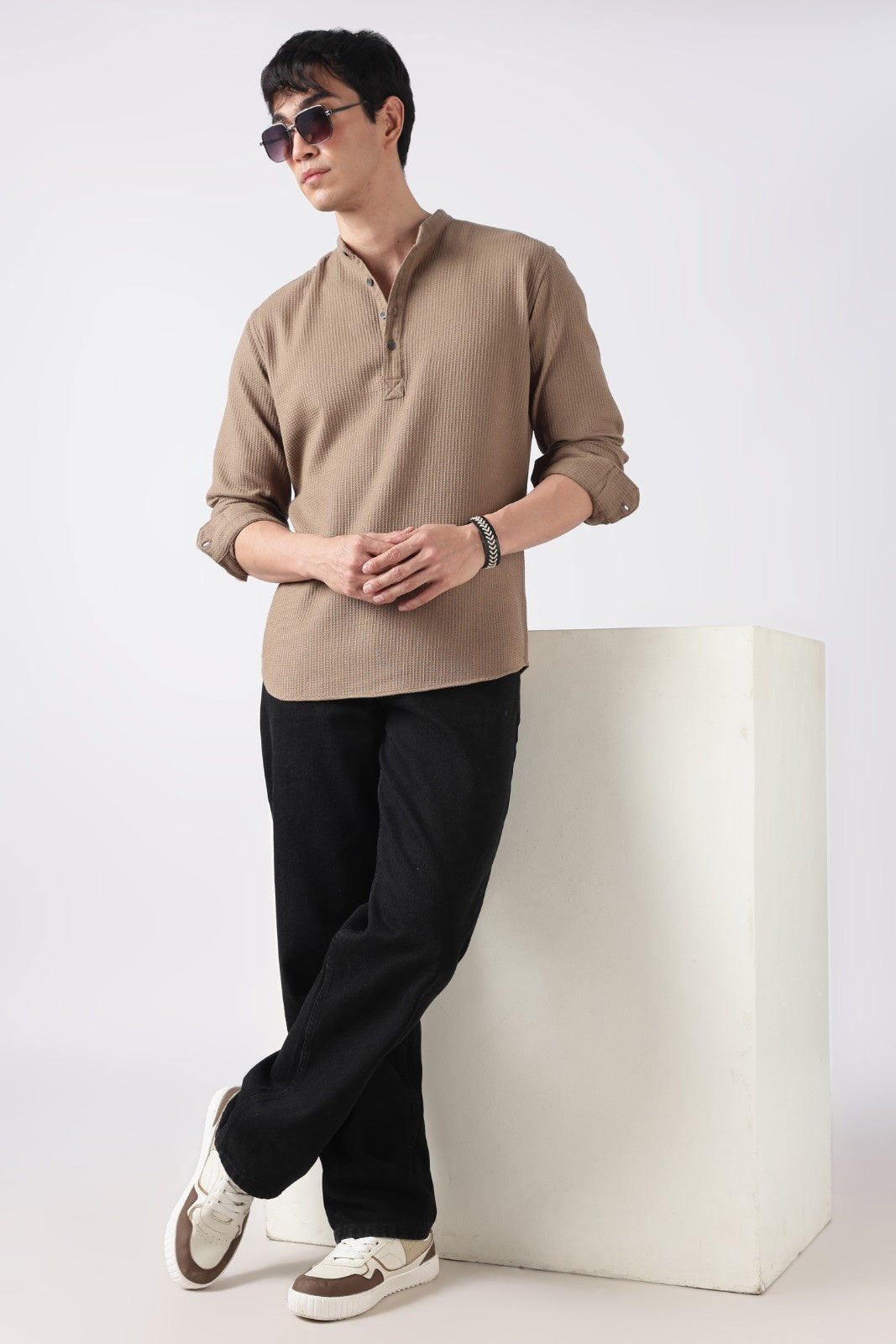 Muted Brown Waffle Textured Short Kurta