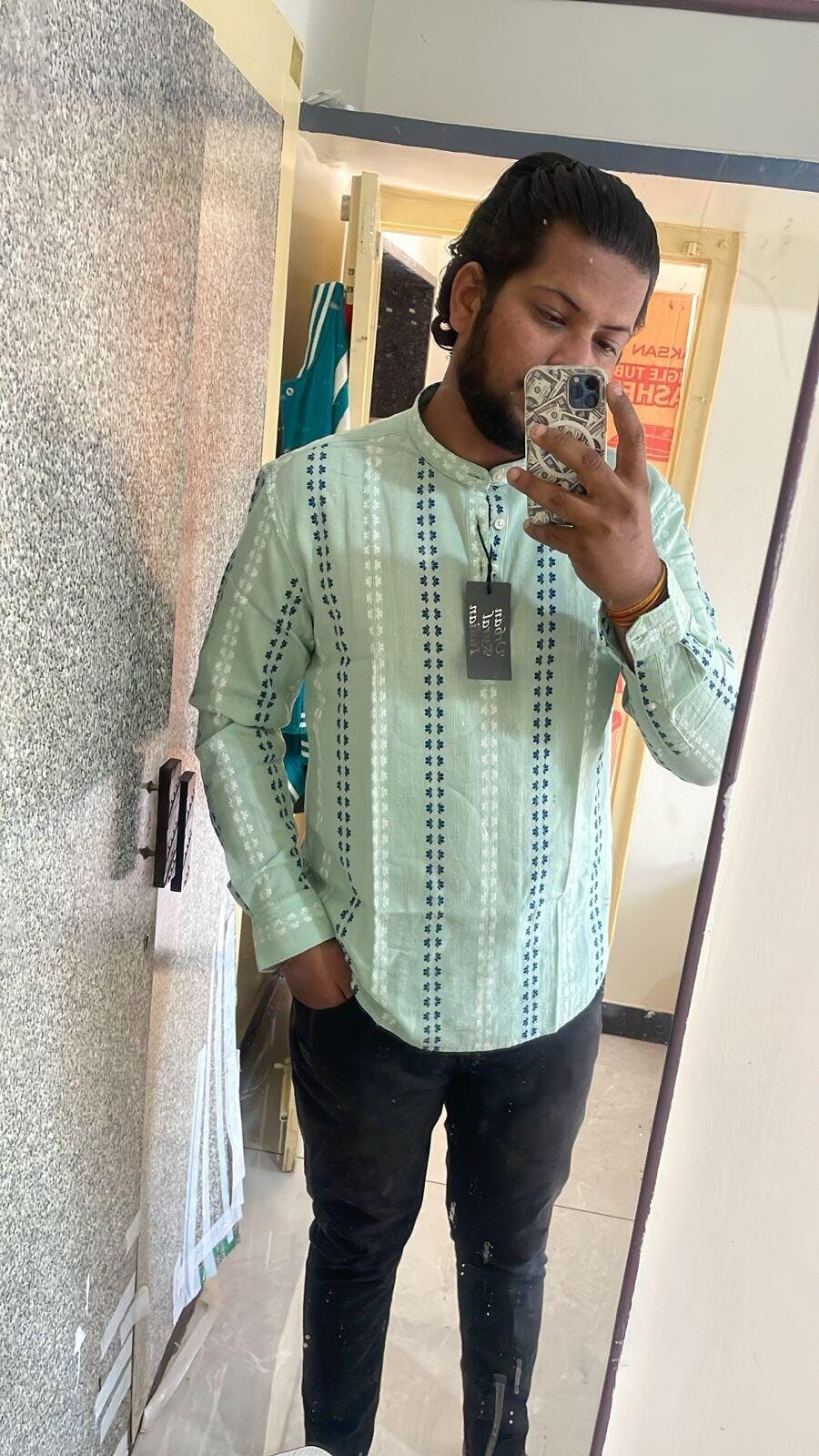 Uri Mint Dobby Motif Short Kurta